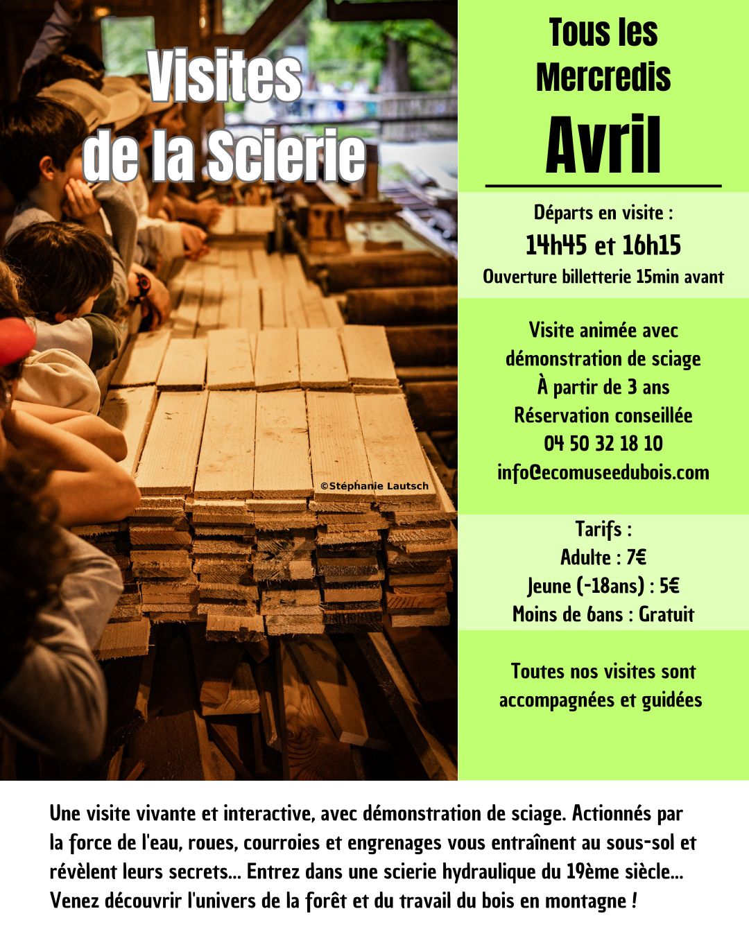 les Mercredis après-midi pour les visites de la scierie.